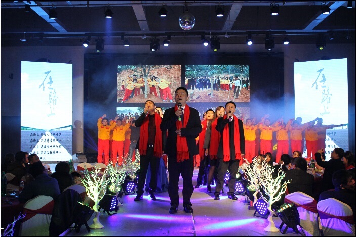 一场气势磅礴的面具舞,带大家进入了演出环节。所有节目都是太阳集团8722c员工精心准备的,节目形式多样,有小品、歌曲联唱、舞蹈、乐器等等,大家个个身怀绝技,台下掌声也是连绵不绝。一首《在路上》带大家进入了此次嘉年华的高潮,伴随着在路上的朗诵,董事长携伴随公司一路走来的老员工一同上台,共同唱响太阳集团8722c一路走来的艰辛与收获。节目中还有公司给大家带来的额外福利,QQ抢红包,真是惊喜不断!