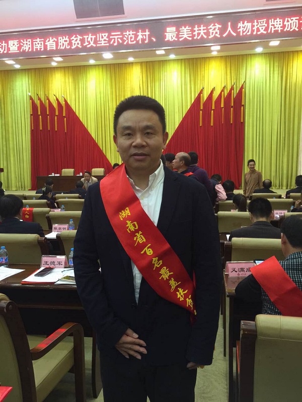 2016年10月14日,湖南长沙“扶贫日宣传活动暨湖南省脱贫攻坚示范村、最美扶贫人物授牌颁证仪式”在湖南九所宾馆会议中心隆重举行。参加会议的主要领导有省人民政府副省长戴道晋、省政府副秘书长曹英华、省扶贫办、湖南日报社等单位主要负责人。经过推荐申报、筛选初审、公众投票和组织专家评审,我司董事长赵忠荣获 “湖南百名最美扶贫人物”称号。