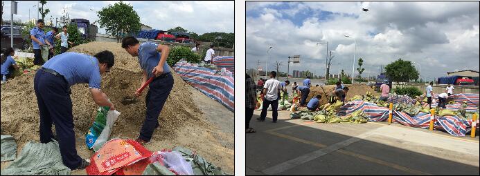 7月1日下午顺安加油站油罐区后面的小河水位暴涨,浏阳片区组长杨栋立即带领站内员工展开抢险救援。几个人在短短的时间内装了200多个沙袋,全部压到罐区后防止大水涌入。晚上大家还不放心,全体员工24小时手机都开机,并达成一致意见有事随时通报,一定及时赶到。
